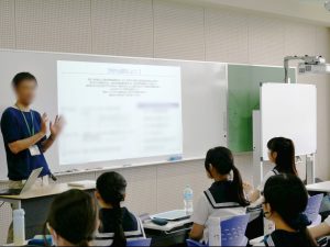 企業の方を招いて、情報との正しい付き合い方やSNSに関するリテラシーを学んだ。(SDGs-4・9)