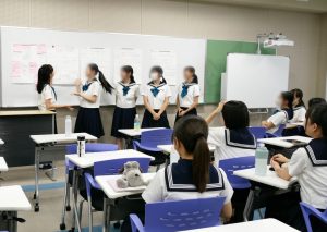小学校では、海外姉妹校との交流により力を入れ、「とびら」学習を深めるほか、これまで実践してきた「すずかけ」(日本の伝統文化を学ぶ学習)をより深めていく。また、進展している情報社会のなかでの生き方・在り方について考えられるように、体験活動と情報教育からなる「つばさ」学習についても、より深いものにしていく。(SDGs-17)