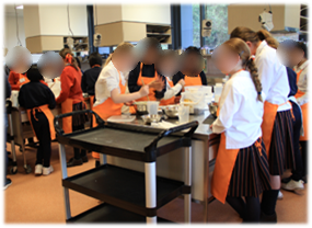 調理実習を一緒にして和食を作ったり、書道の授業に参加したほか、日々の授業を一緒に受け、体育大会にも参加。クラブ活動への参加や浴衣の着付け体験も実施。本校でもホストファミリーを募り交流。(SDGs-17)