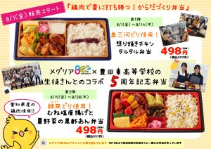 豊田市駅前の桜町本通り商店街から依頼を受け、フラッグや店舗バナー、拳母神社参道に設置する「あんどん(行灯)じゃん」を制作した。フラッグはビジネスプラン3年生、バナーは美術プラン3年生が担当し、商店主と打ち合わせを重ねて完成させた。「あんどんじゃん」は美術プラン2年生が制作し、年末年始に設置された。また、地域活性化を目的にトヨタ生活協同組合と連携し、調理・栄養プランの生徒が「高校生の作るお弁当」や「恵方巻」企画に参加。試作・試食を経て商品化され、メグリア各店舗で販売された。さらに、豊田商工会議所青年部が運営するIPPO CLUBの活動に参加。「とよた魅力発見隊」「豊スタおいでん夏祭り」「とよた産業フェスタ」「とよた元気まつり」などのイベントで、地域の子どもや来場者と交流し、ブース運営や企画を通じて地域貢献を行った。これらの活動を通じ、生徒は地域とのつながりや協働の大切さを学んだ。