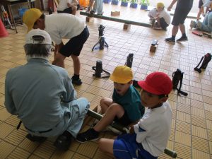 ③ 内川の環境に係わる学習・・・「みどりの少年団」の活動として、地域のたけのこまつり祭で募金活動を行った。また地域の方や森林振興課の方々に指導してもらい、地域の間伐材を使ってえんぴつ立ての製作を行った。この活動を行うことで、地域の特色や間伐の必要性、間伐材の有効活用の手段を学ぶことができた。今年度はこれらに加え、講師をお招きしての「自然学校」を開催。里山の大切さについて学ぶ良い機会とすることができた。