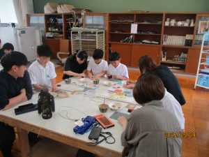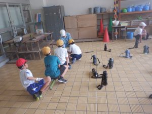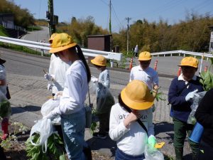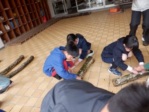 ③ 内川の環境に係わる学習・・・「みどりの少年団」の活動として、地域のたけのこまつり祭で募金活動を行った。また地域の方や森林振興課の方々に指導してもらい、地域の間伐材を使ってえんぴつ立ての製作を行った。この活動を行うことで、地域の特色や間伐の必要性、間伐材の有効活用の手段を学ぶことができた。今年度はこれらに加え、講師をお招きしての「自然学校」を開催。里山の大切さについて学ぶ良い機会とすることができた。