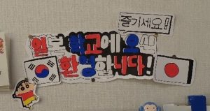 今年度、7月ACCU日韓教職員交流プログラムに本校職員が参加し、大韓民国済州島の学校と交流をする機会に恵まれた。その研修で志を同じくする韓国の教職員と出会い、国際交流、異文化理解を深めるべく、交流授業を計画した。今年度は「お互いを知る」という目標を立てた。