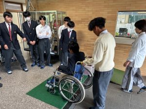また、家庭科の授業では「車いす体験」「認知症サポーター講座」を通し、人権意識の構築と育成を目指した。学校全体としては、「人権映画鑑賞会」を通して様々な観点から人権について生徒一人一人が考えることができた。