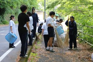 また、地域の環境美化のためにロードプレーヤーや通学路清掃に全校生徒で取り組んだ。その他にも地元の小中学生などとの交流を通して地域との連携を強化することができた。